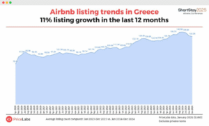 בשנים האחרונות, שוק הנדל"ן באתונה חווה שינוי משמעותי. הנתונים העדכניים ביותר מצביעים על המשך מגמת הצמיחה בשוק השכרות נופש ביוון. בדצמבר 2024 נרשמו כ-132,500 נכסים פעילים בפלטפורמות ההשכרה השונות ברחבי המדינה, עלייה משמעותית של 11% בהשוואה לשנת 2023.